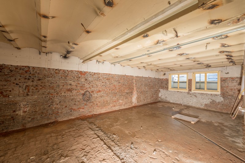 Bij het inspecteren van het bouwwerk kijken we of de kelder is opgebouwd uit beton of metselwerk. Het kan ook zijn dat de vloer van beton is en er een gemetselde stenen vloer ligt. Ook kijken we of er een deklaag van cement aanwezig is en hoe de aansluiting is van de wand op de vloer.