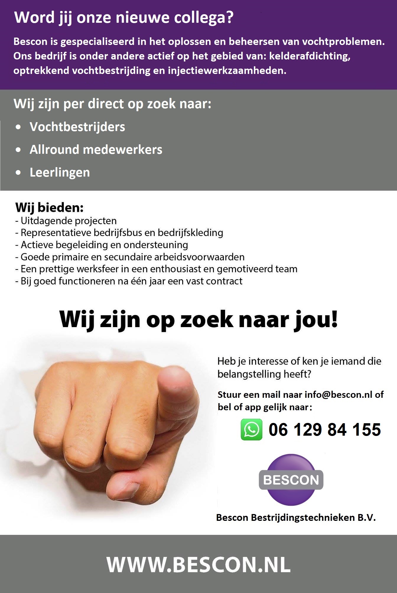Ons bedrijf is gespecialiseerd in het oplossen van vochtproblemen. We zijn actief op het gebied van onder ander kelderafdichting, afdichting door middel van injectiemethoden, optrekkend vochtbestrijding en andere lekkageproblemen. Onze doelstelling is het beschermen en behouden van gebouwen tegen binnendringend grondwater.